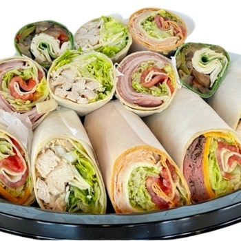 Our famous Italian Hoagie with lettuce, tomato, onion; Home Roasted Turkey & Havarti with lettuce, tomato; Home Roasted Beef & Cheddar with lettuce, and tomato; our famous handmade Chicken Cutlet with broccoli rabe, roasted red peppers, and extra sharp provolone; Grilled Vegetables with arugula, balsamic glaze, and fresh mozzarella. Sides of hot & sweet peppers, pickles, mayo, oil & vinegar. Small tray has 24 pieces, Large tray has 32 pieces.